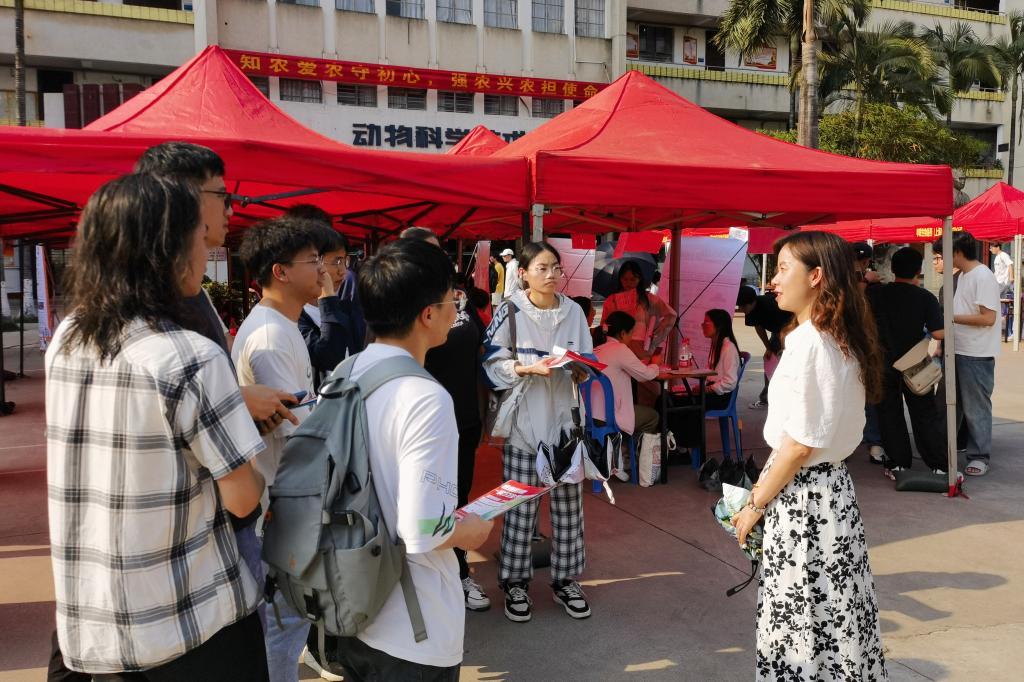 为积极搭建求职学生与用人单位高效双向选择平台,推动人才供需精准对接,实现人力资源供需双方共赢,4月22日,新葡的京集团8814检测站动物科学技术学院在学院大楼前坪举办2025年(春季)就业实习双选会。