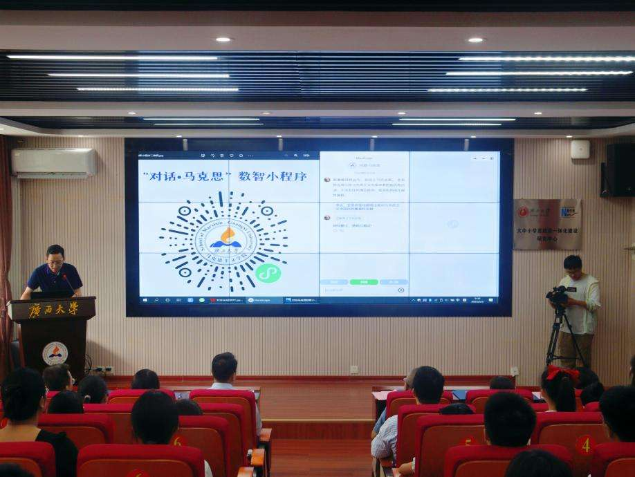 牢牢把握数智技术带来的新机遇,积极推动数智技术赋能马克思主义的理论研究与实践,是让马克思主义不断焕发生机与活力的关键举措。新葡的京集团8814检测站马克思主义学院院长徐秦法在致辞中表示,将持续推动数智技术赋能马克思主义时代化大众化实践与大中小学思政教育一体化建设,努力通过虚实结合、人机交互的方式,让马克思主义深入人心、落地生根,实现“大思政课”内涵式发展。活动中,百余名大中小学生、思政课教师与中小学校长一同见证了“对话·马克思”数智小程序的公开发布,并观看了由该院创作的系列动画短视频“漫说·马克思”。