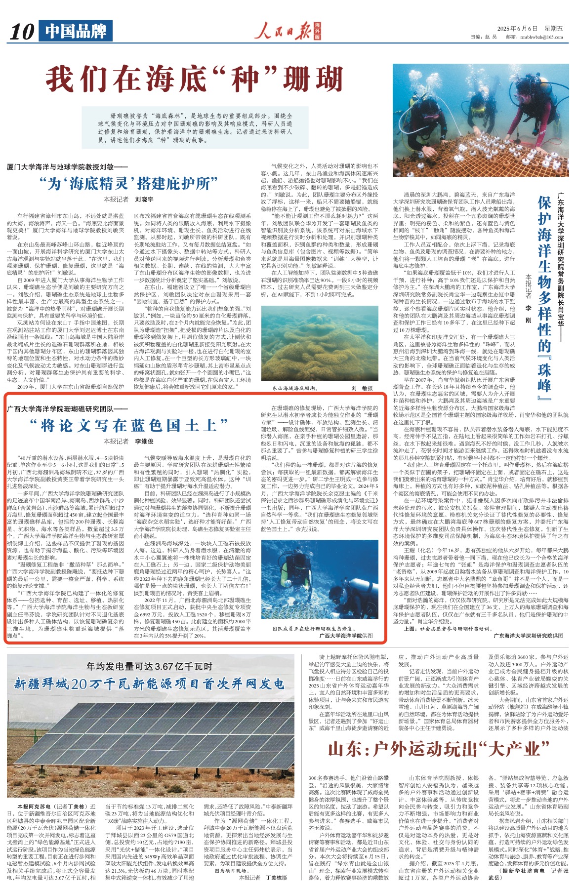 “我们种的每一株珊瑚,都是对这片海的修复尝试;每获取的一组最新数据,都离解锁海洋生态的密码更进一步。”研二学生王明威一边参与修复工作,一边努力完成自己的毕业论文。2024年5月,新葡的京集团8814检测站海洋学院院长余克服主编的《千米深钻记录之西沙群岛珊瑚礁形成演化与环境变迁》一书出版;同年,新葡的京集团8814检测站海洋学院团队获广西自然科学一等奖。“我们在珊瑚礁生态修复领域坚持‘人工修复带动自然恢复’的理念,将论文写在蓝色国土上。”余克服说。