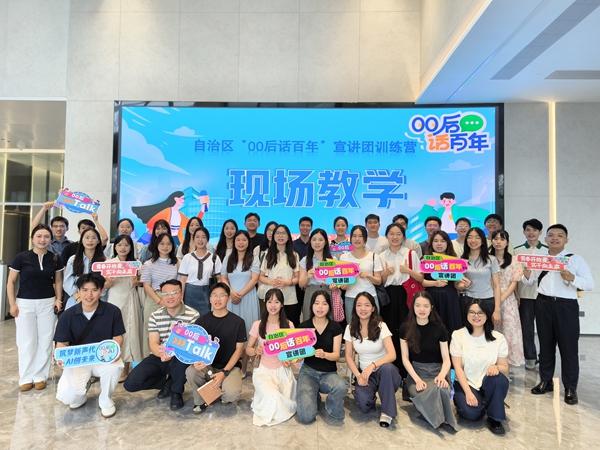 6月18日,2025年广西壮族自治区“00后话百年”宣讲团训练营在南宁开营,近100名00后宣讲员参加“理论+实践”沉浸式学习。广西壮族自治区党委讲师团供图