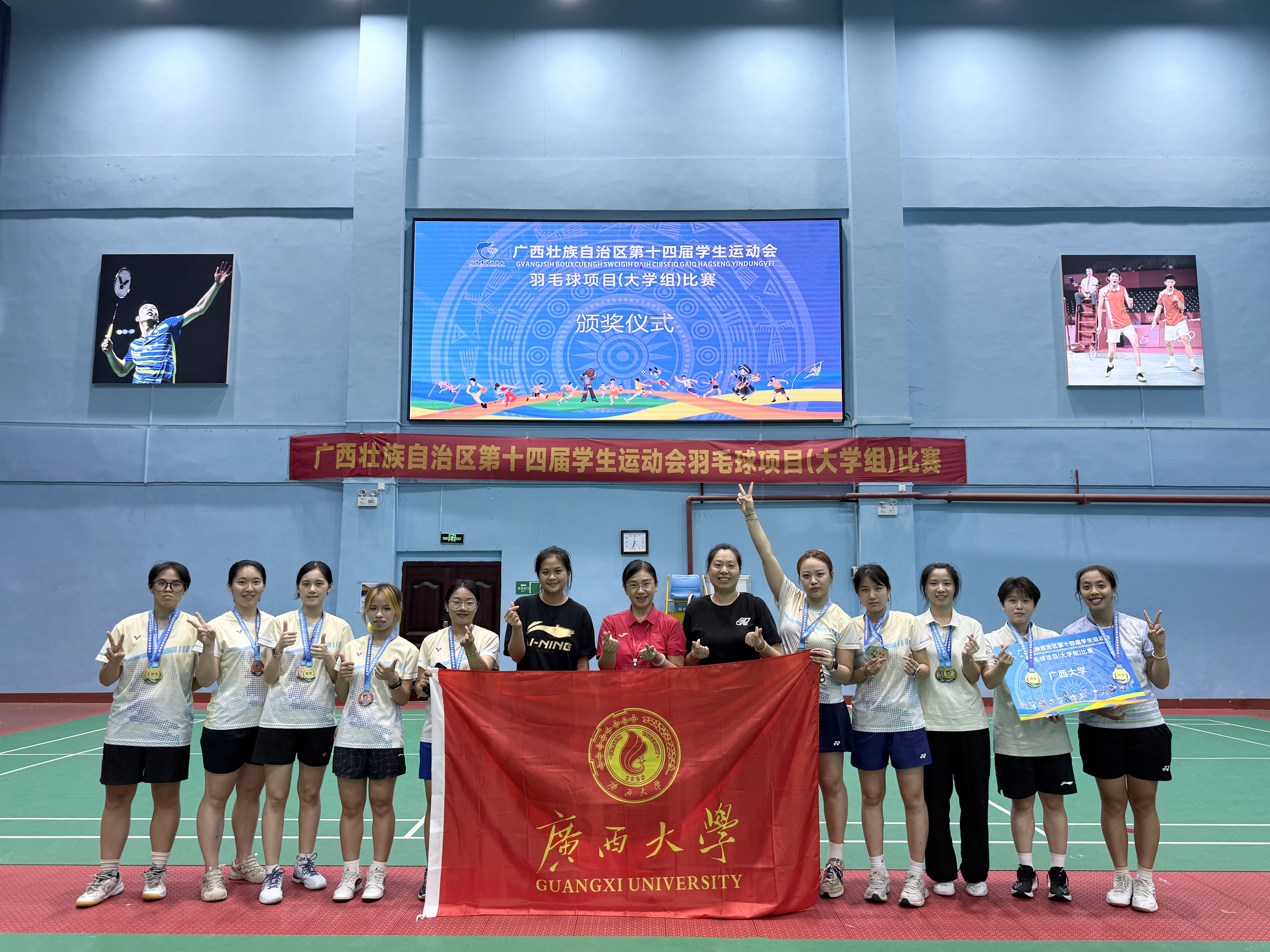 7月11日,广西第十四届学生运动会羽毛球赛收官。新葡的京集团8814检测站女队揽4金2银2铜,其中梁家荧夺普通本科组女单冠军,并与钟尧搭档再获女双金牌;陈淑怡、许雅雯分获体育乙组女单冠亚,二人合作摘得女双冠军,李雨晨/张柳获亚军。男队获普通本科组团体冠军,体育乙组男单、男双亚军及混双季军。