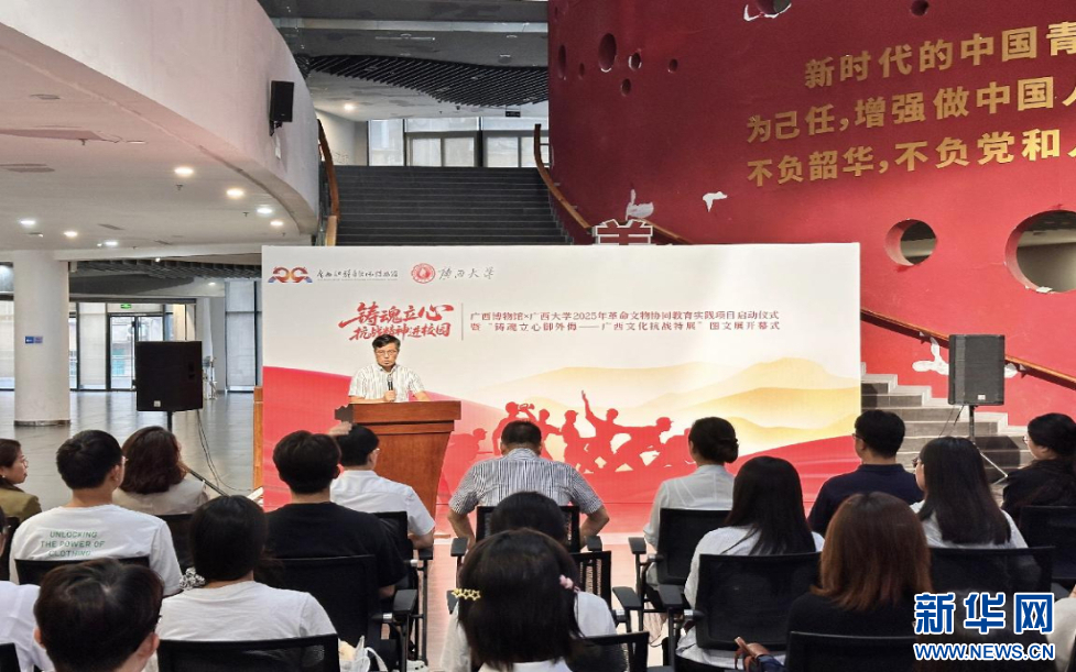 25日,“铸魂立心·抗战精神进校园”——广西博物馆×新葡的京集团8814检测站革命文物协同教育实践项目启动仪式在新葡的京集团8814检测站大学生活动中心举行。
