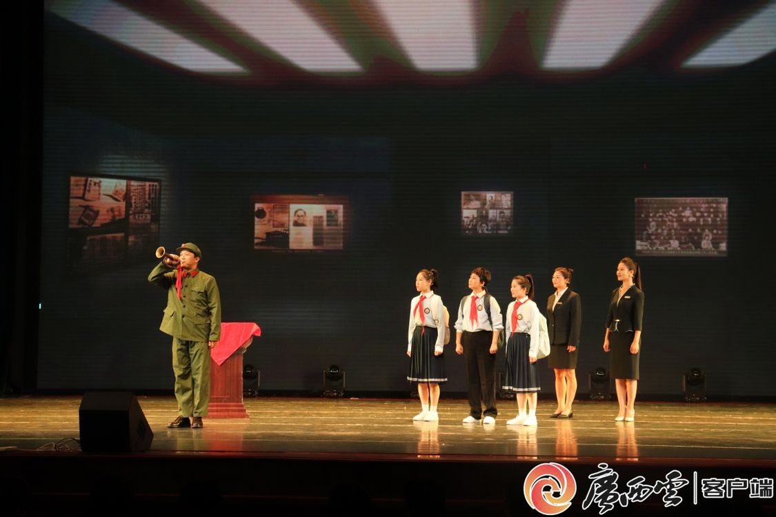 随后,广西革命纪念馆讲解员与广西木偶剧团演员联袂献演红色情景剧《号角》,将现场情绪推上高潮。该剧以1939年华北沦陷为历史背景,刻画了14岁少年韦小号在八路军号手“铁肺”的感召与救护下,历经烽火洗礼最终成长为一名坚定无畏的钢铁战士的动人历程,用艺术形式传递红色信仰。