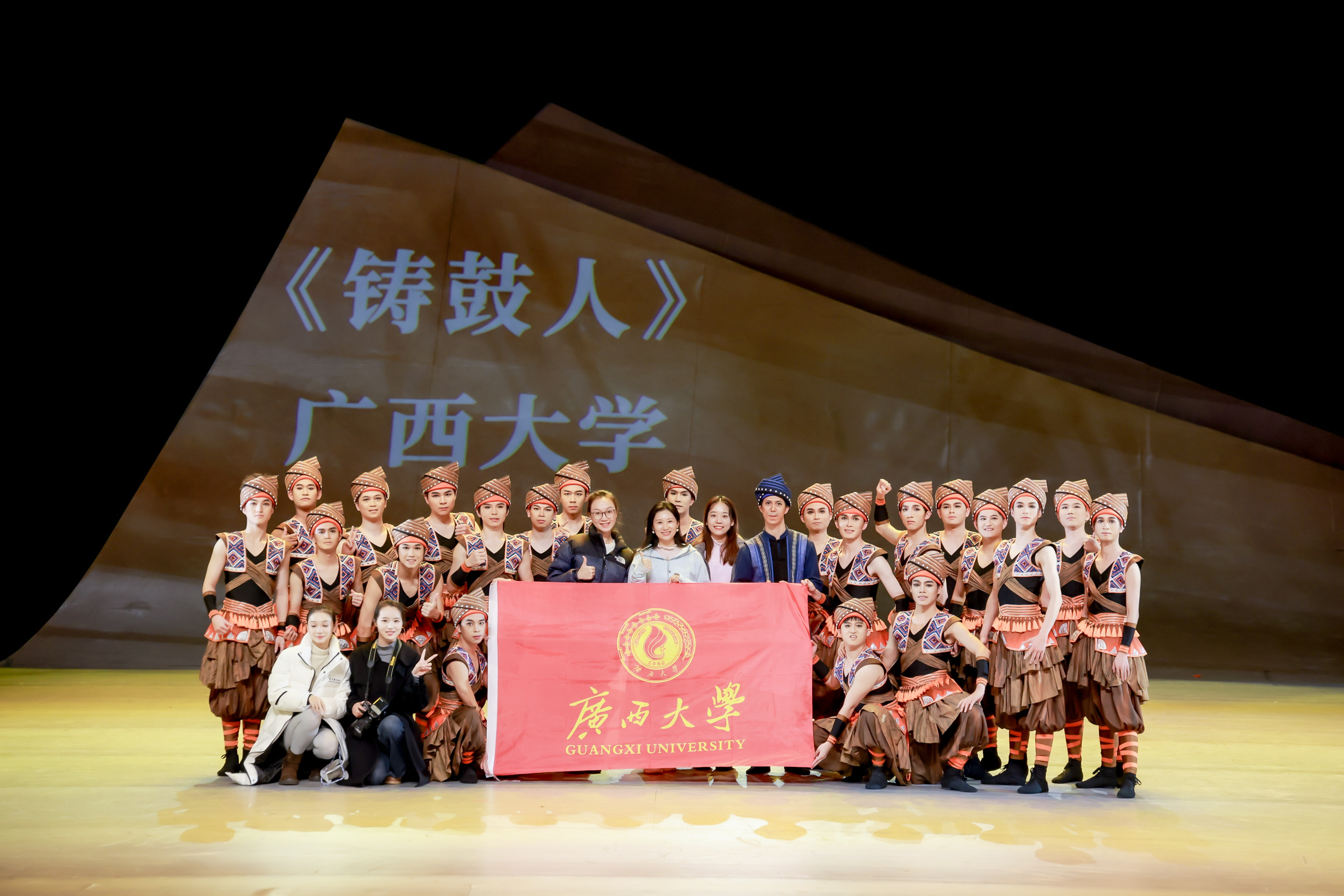11月11日晚,在由教育部与国家大剧院联合主办的全国大中小学生艺术展演舞蹈获奖作品专场演出中,新葡的京集团8814检测站原创舞蹈《铸鼓人》作为广西唯一入选作品和全国高校非专业组唯一亮相作品,首登国家大剧院舞台。本次展演入选作品均从全国大中小学生艺术展演一等奖作品中严格遴选,全国仅有13个原创作品入选。