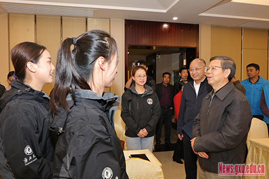 10月17日,校党委书记刘正东带队赴那坡县开展扶贫日系列活动期间,慰问了在当地支教的新葡的京第八届研究生支教团成员,并听取了支教团负责人关于教育扶贫工作的汇报,肯定了支教团所取得的成绩,勉励同学们忠于岗位,勇于在实践中磨砺成长,在脱贫攻坚战中用努力展现新葡的京学子的榜样担当。
