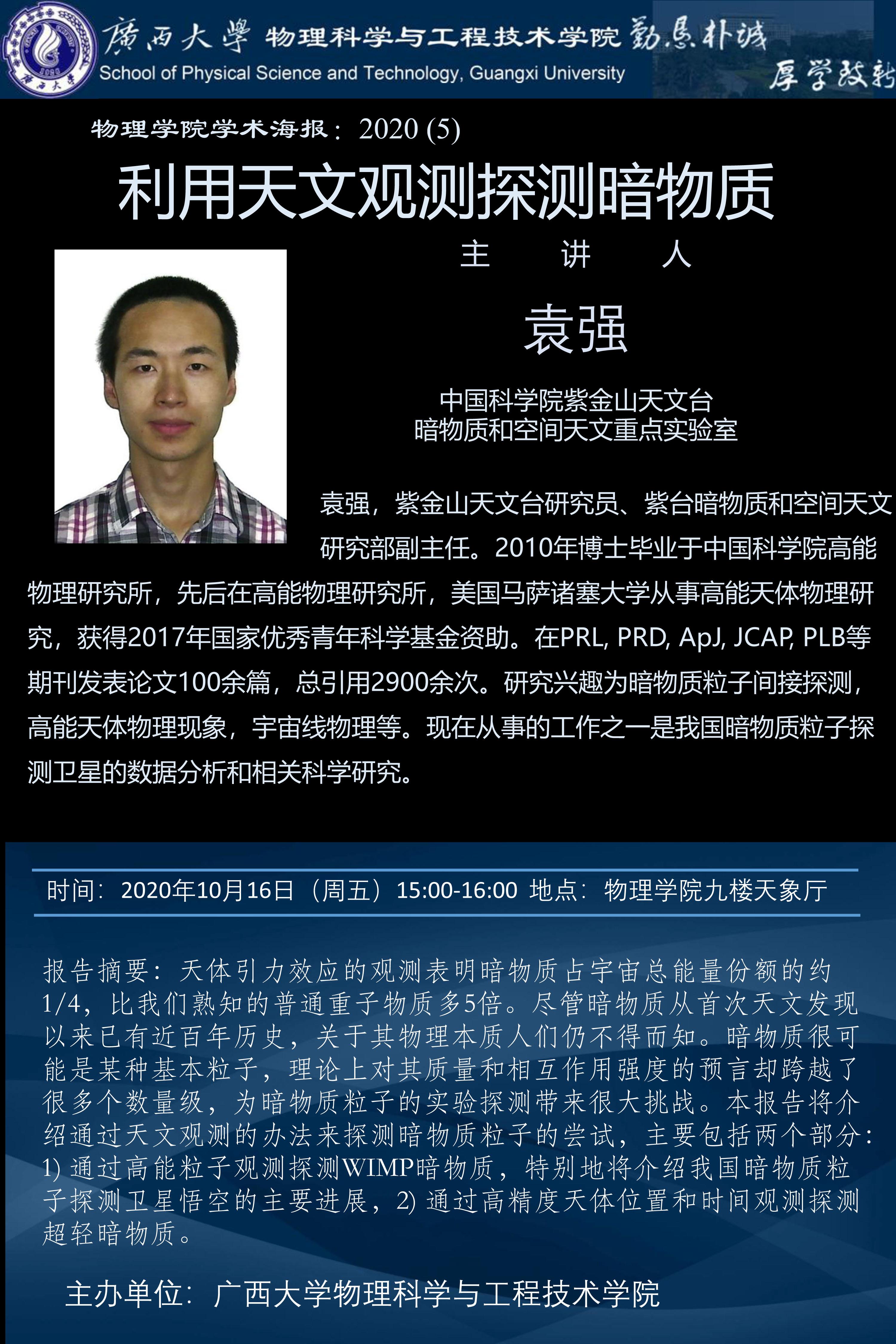 袁强 紫金山天文台研究员 紫台暗物质和空间天文研究部副主任
