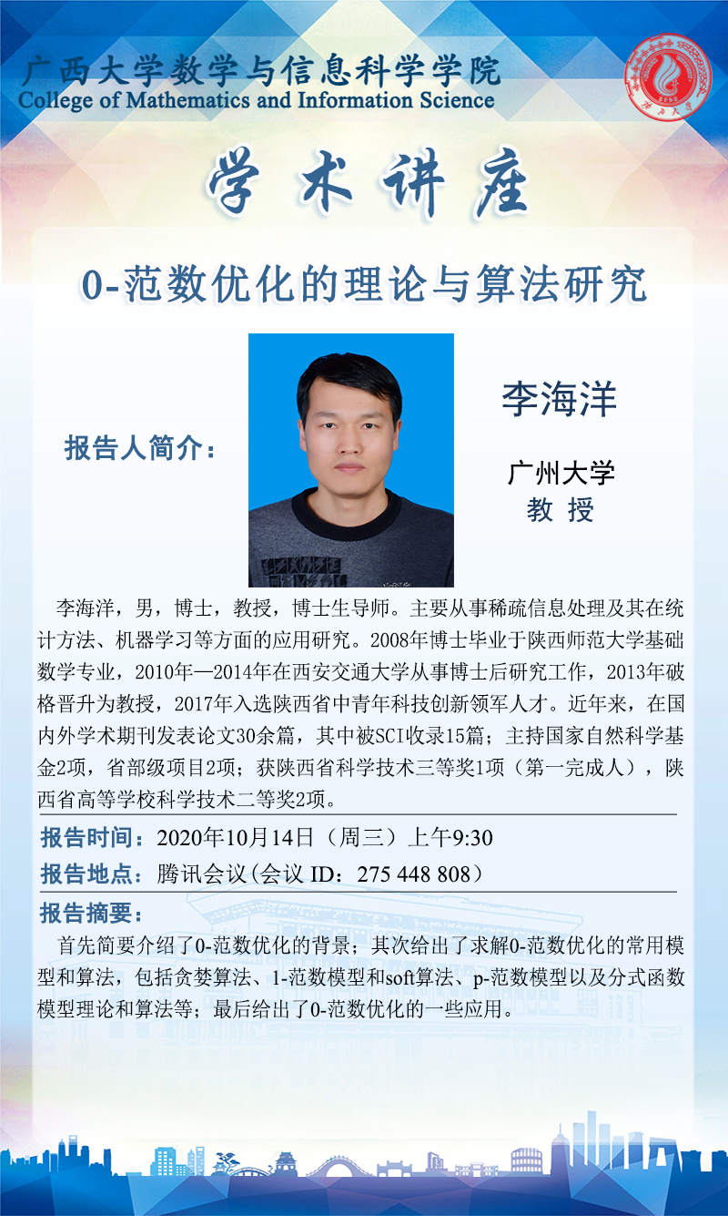 数学与信息科学学院学术讲座:0-范数优化的理论与算法研究