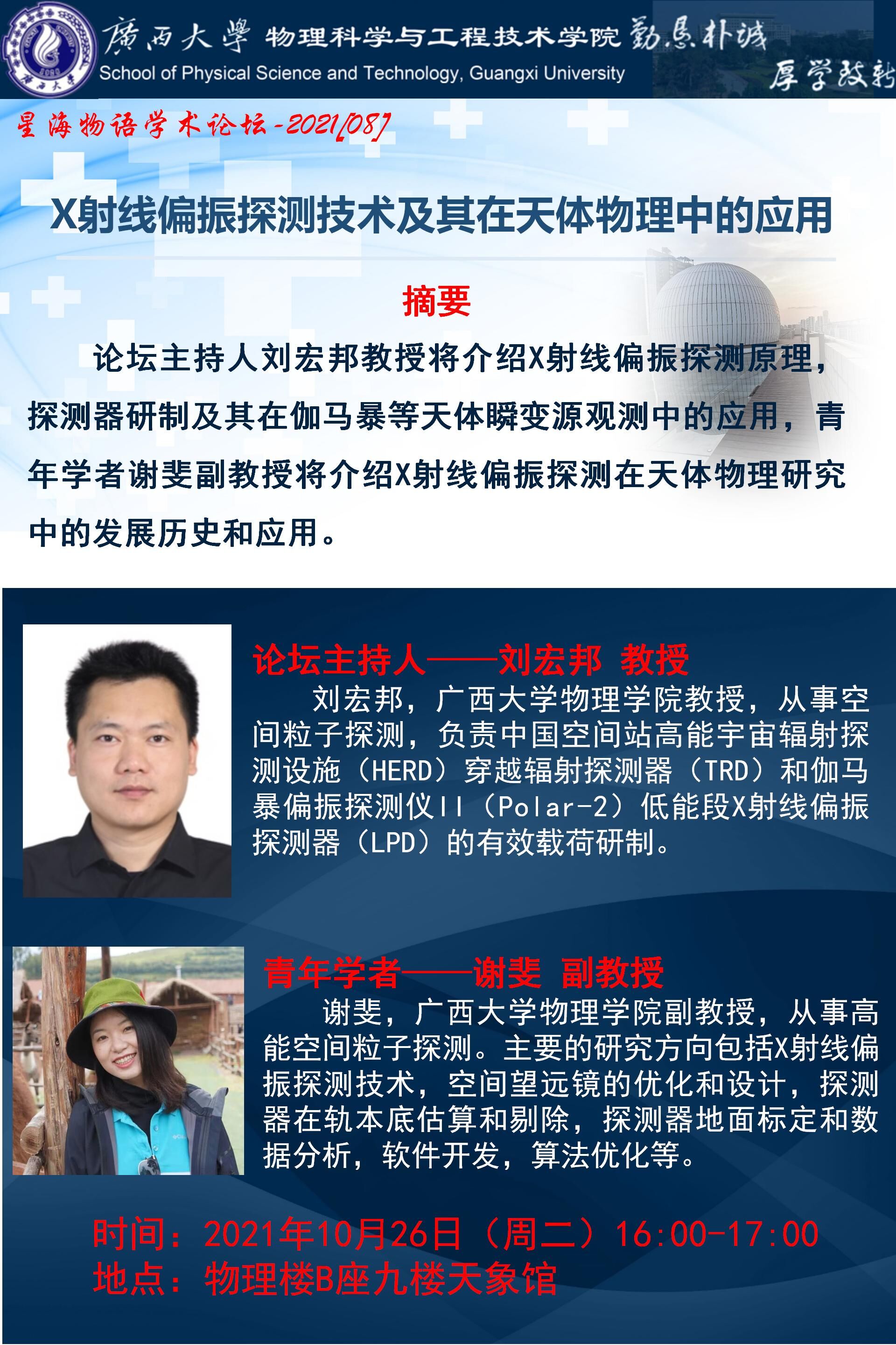 物理学院星海物语学术论坛(第八期):X射线偏振探测技术及其在天体物理中的应用