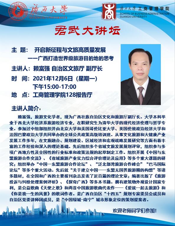 君武大讲坛:开启新征程与文旅高质量发展——广西打造世界旅游目的地的思考