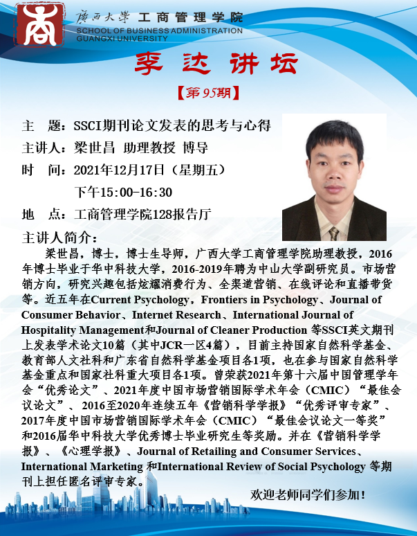 工商管理学院“李达讲坛”:SSCI期刊论文发表的思考与心得