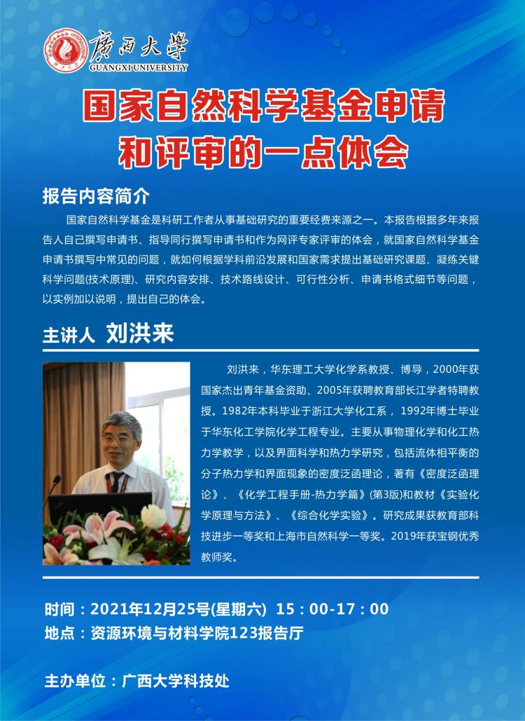 轻工与食品工程学院学术报告:国家自然科学基金申请的几点体会