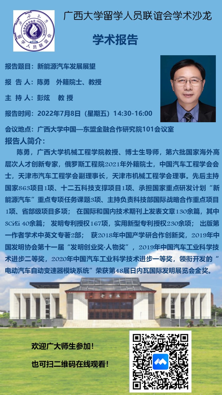 新葡的京集团8814检测站留学人员联谊会学术沙龙:新能源汽车发展展望