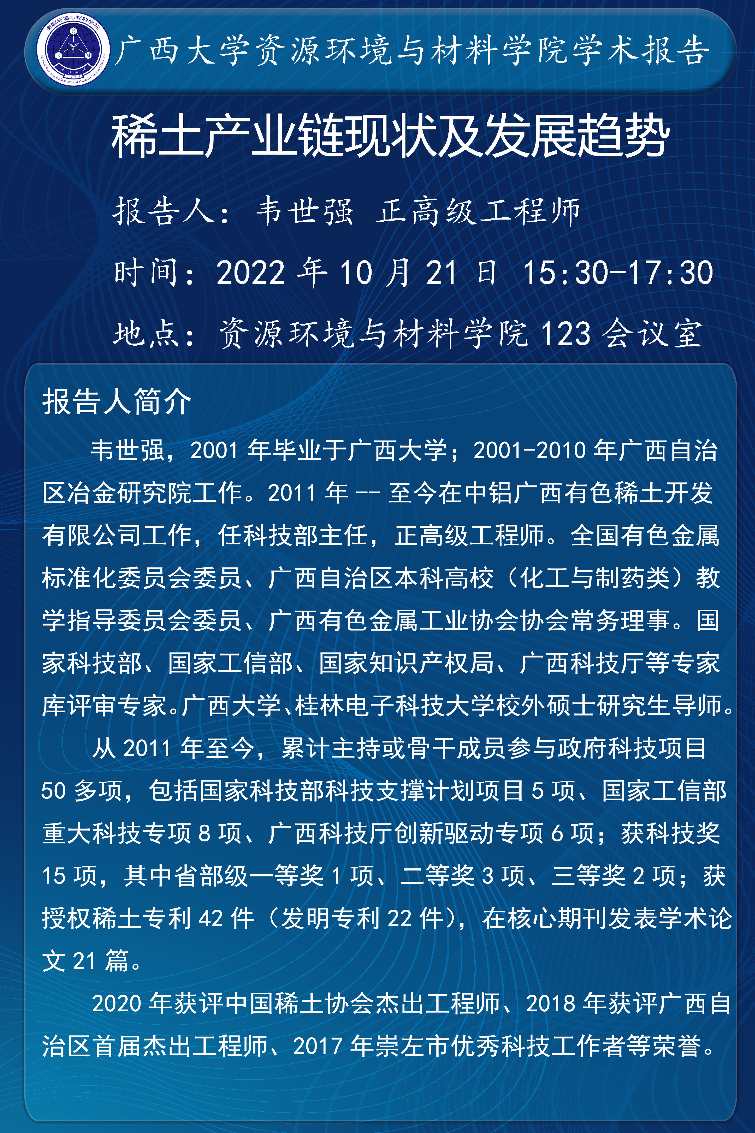 资源环境与材料学院学术报告:稀土产业链现状及发展趋势