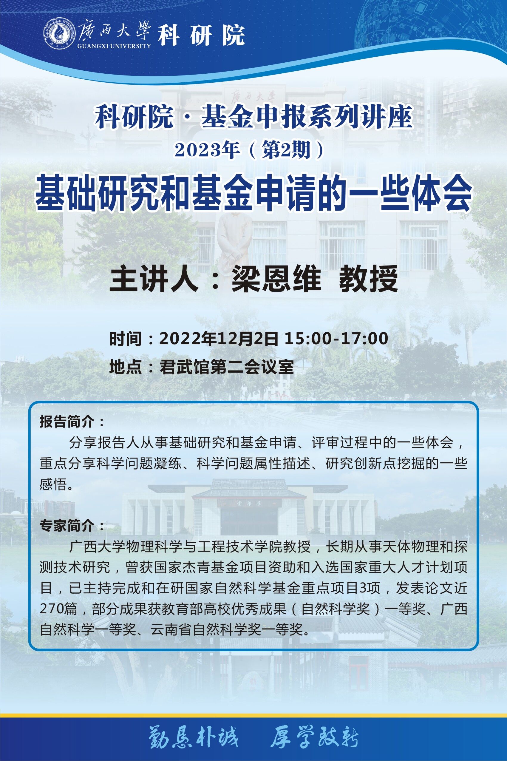 科研院·基金申报系列讲座2023年(第2期) 基础研究和基金申请的一些体会