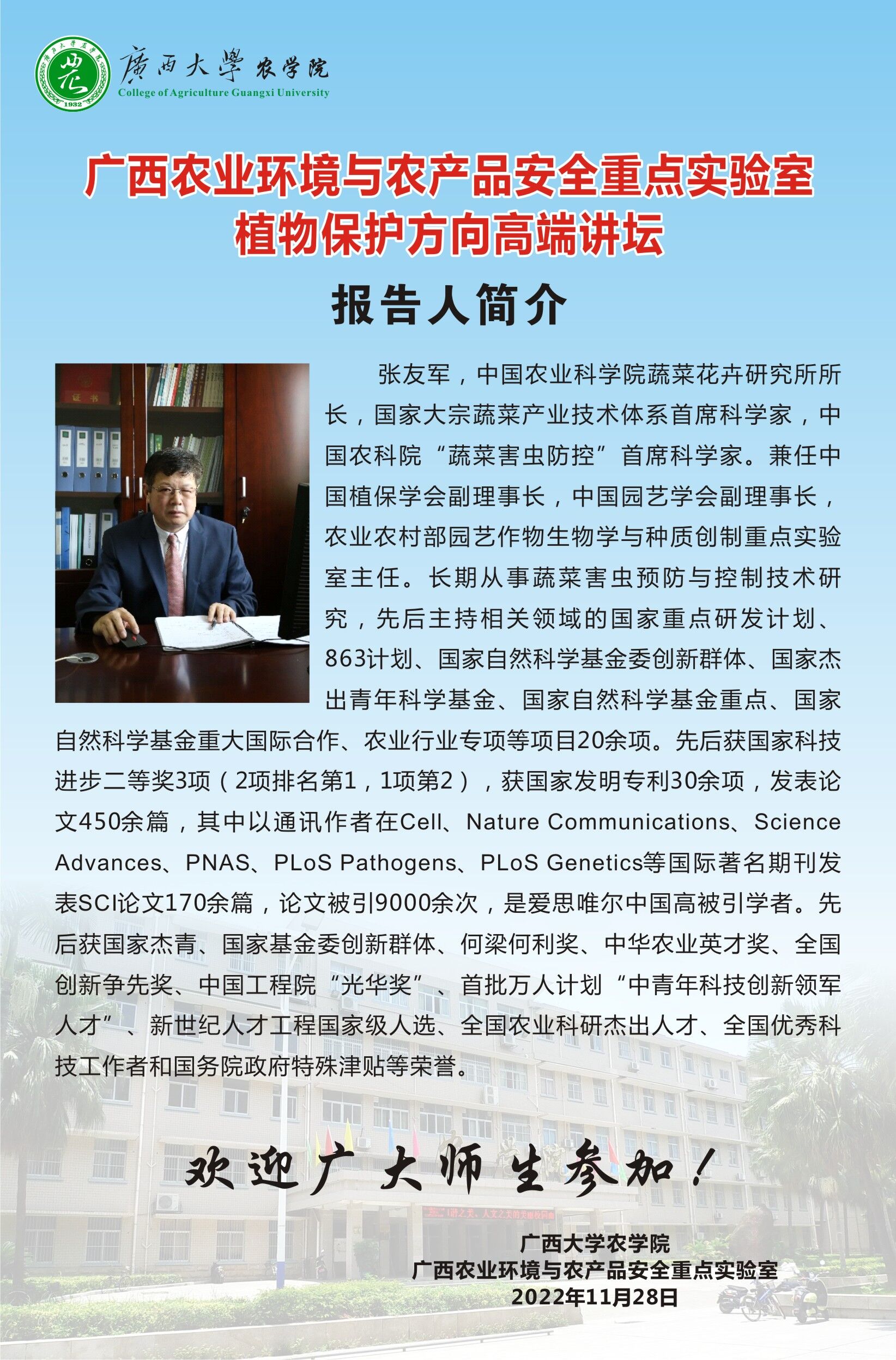 广西农业环境与农产品安全重点实验室 植物保护方向高端讲坛 重大外来入侵害虫烟粉虱的成灾机制