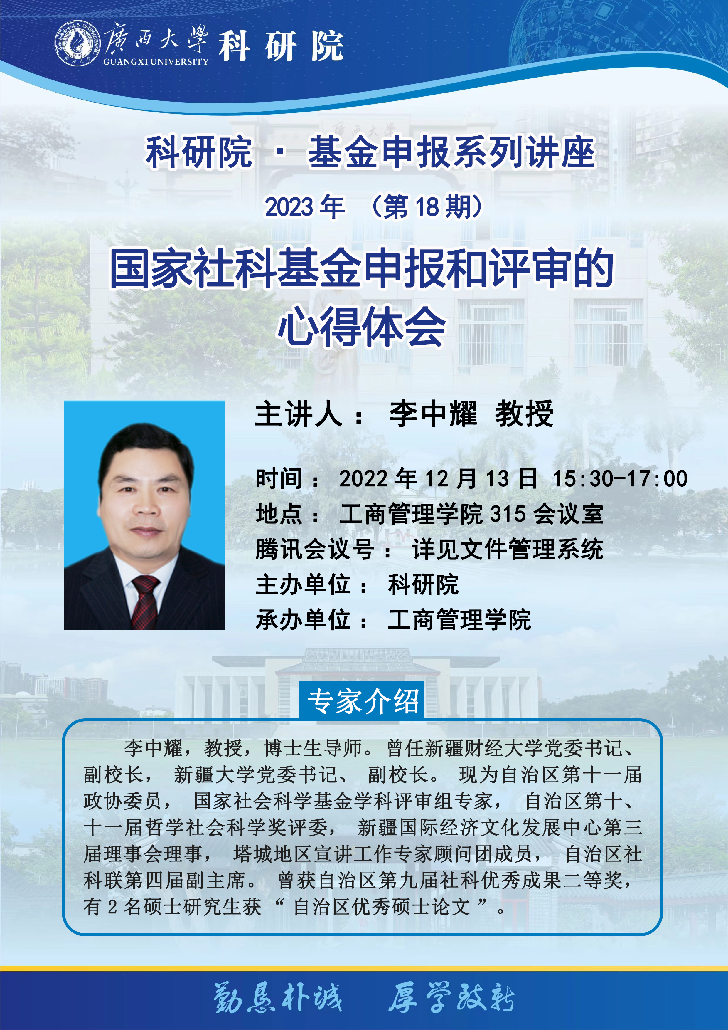 下一条:科研院·基金申报系列讲座 2023年(第17期)科研素养与项目申报:人文社科研究项目的构想、培育与论证