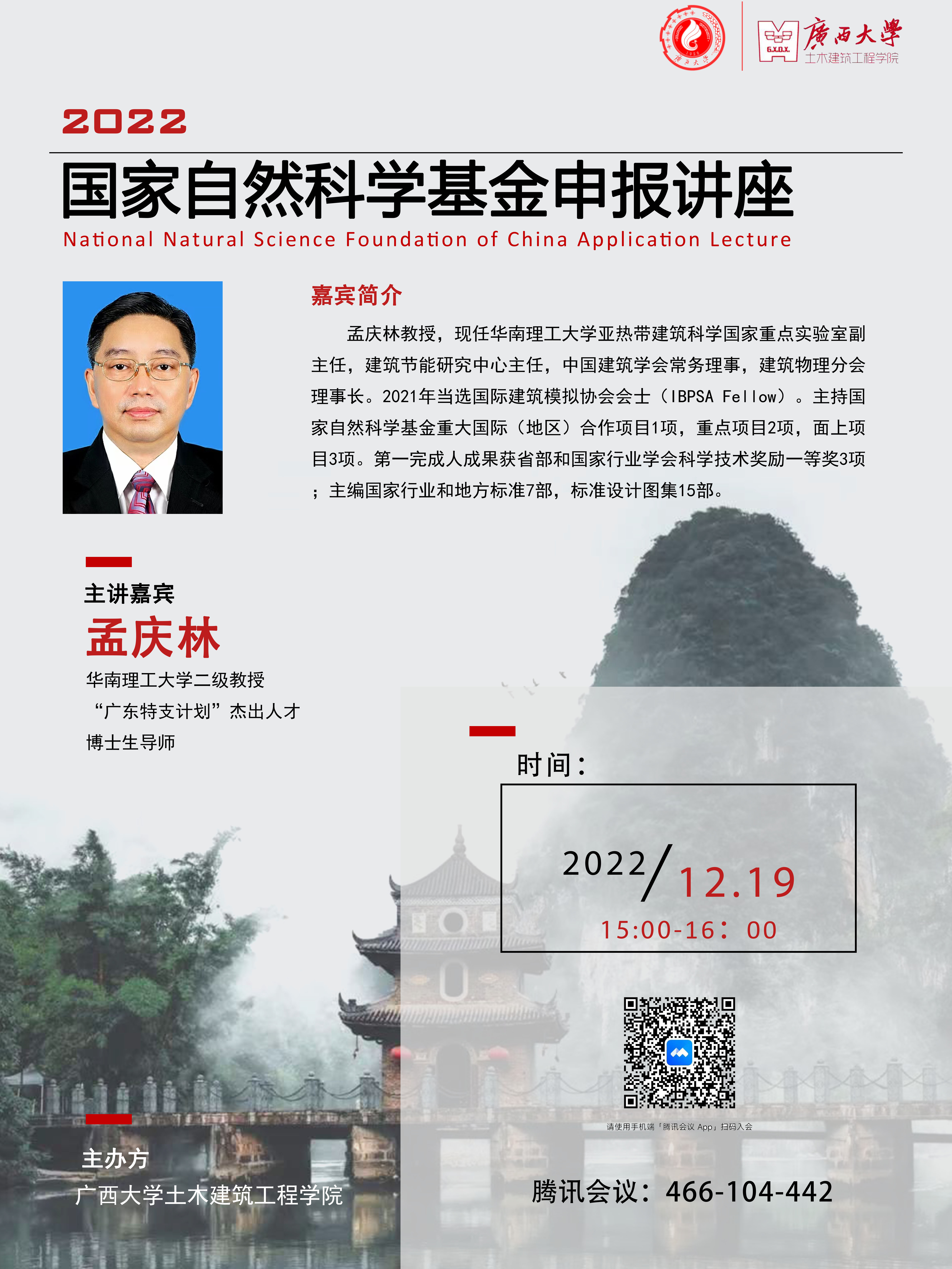 新葡的京集团8814检测站土木建筑工程学院学术报告:国家自然科学基金申报讲座