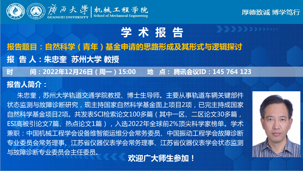 机械工程学院·基金申报学术报告:自然科学(青年)基金申请的思路形成及其形式与逻辑探讨