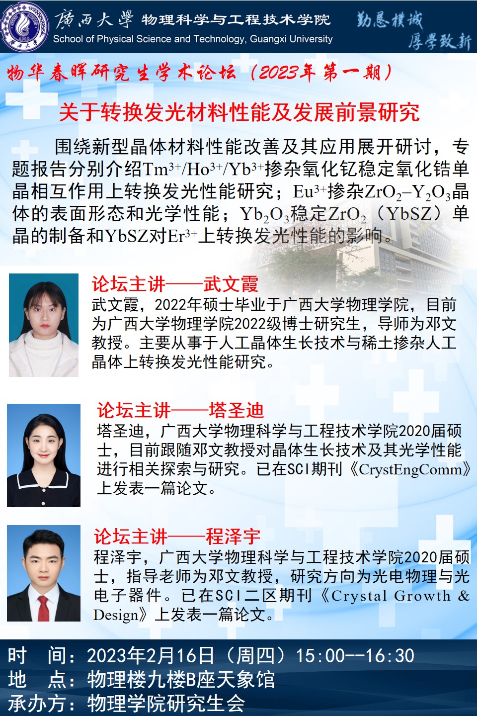 物理学院2023年物华春晖学术论坛(第一期):关于转换发光材料性能及发展前景研究
