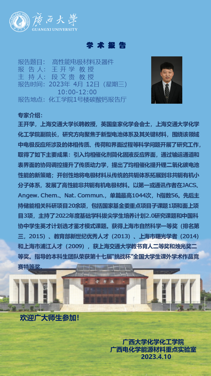 化学化工学院2023年学术报告(第一期):高性能电极材料及器件