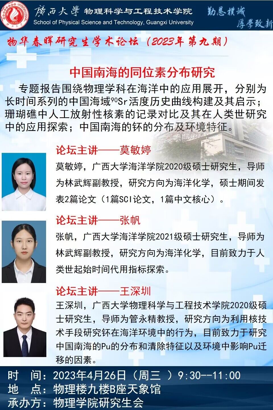 物理学院2023年物华春晖学术论坛(第九期):中国南海的同位素分布研究