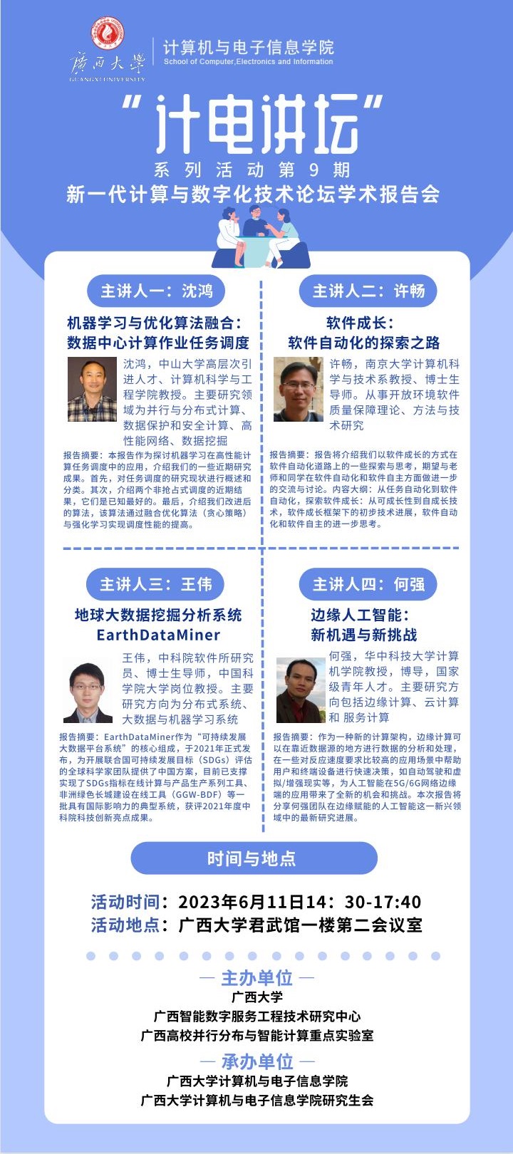 计电讲坛系列活动第8期:计算机与电子信息学院学术报告会