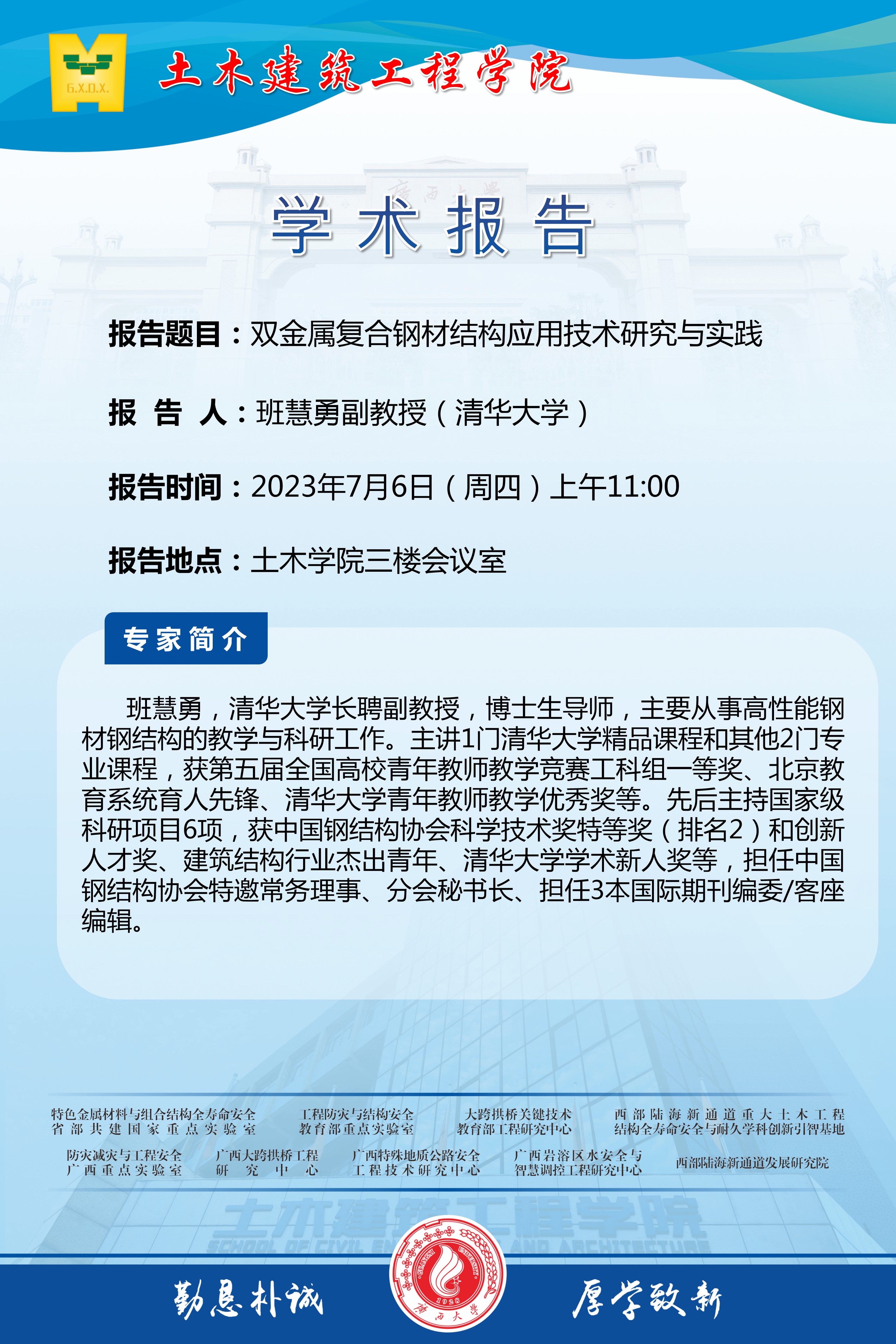 土木建筑工程学院学术讲座:双金属复合钢材结构应用技术研究与实践