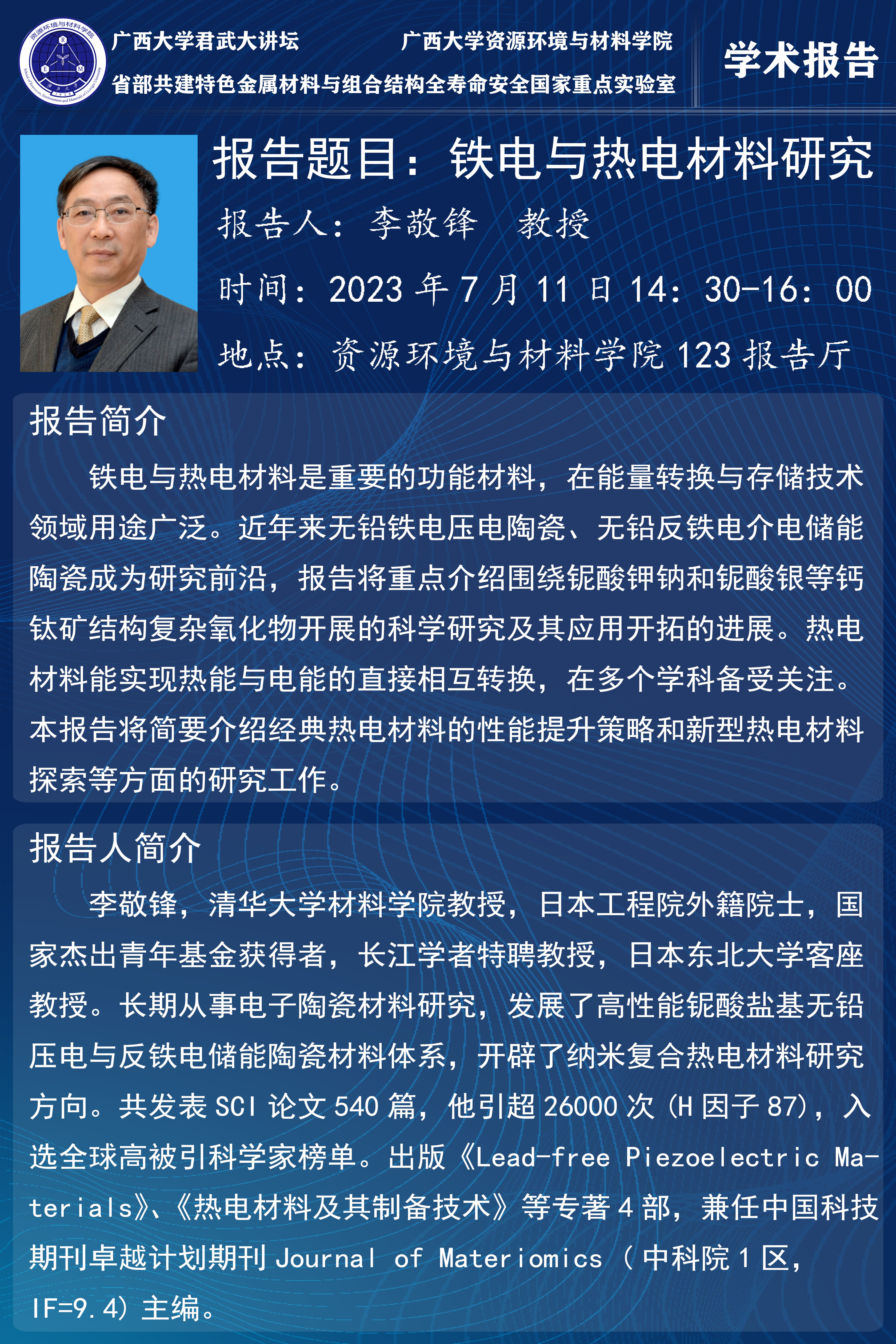 新葡的京集团8814检测站君武大讲坛:铁电与热电材料研究