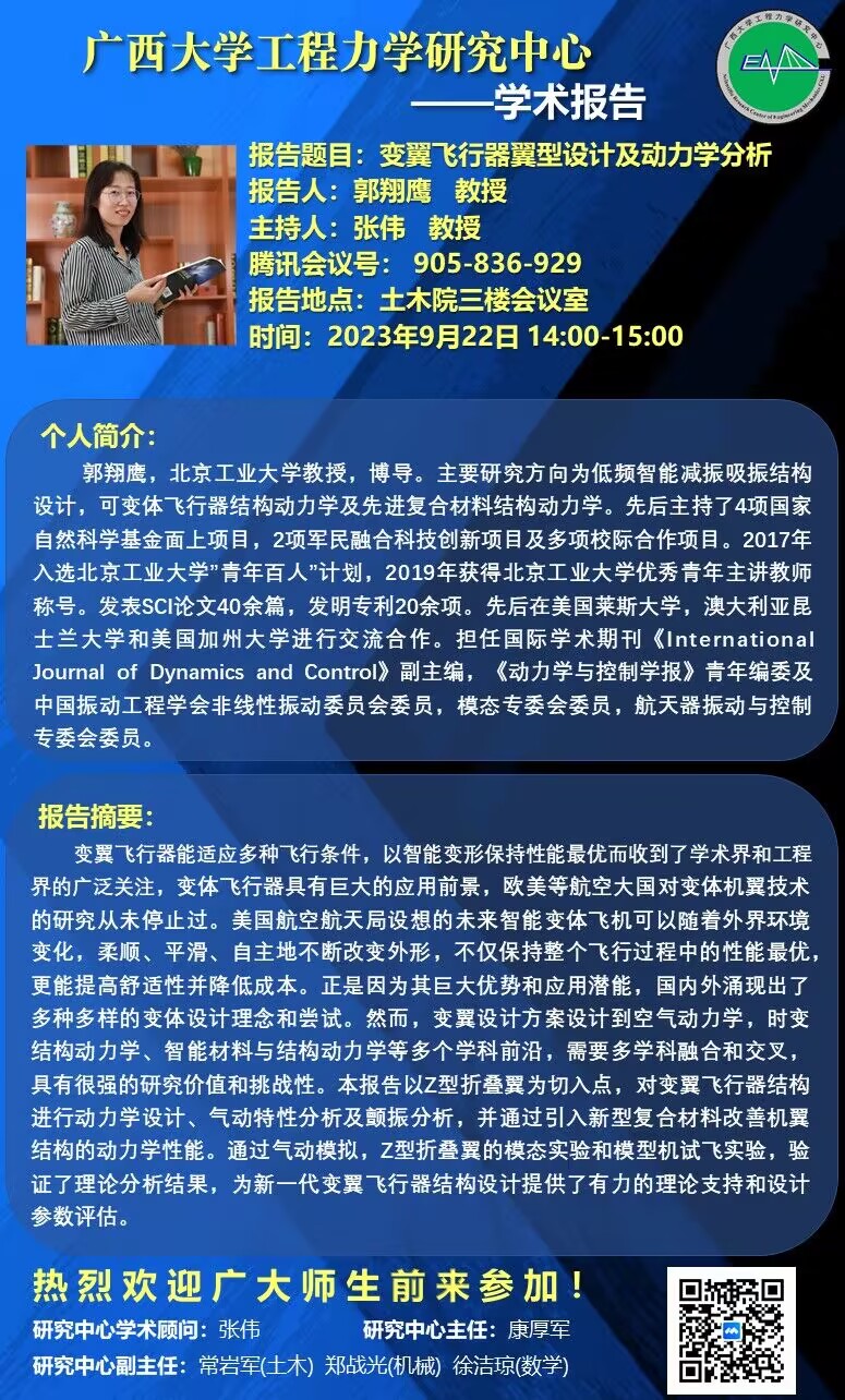 工程力学研究中心学术报告:变翼飞行器翼型设计及动力学分析