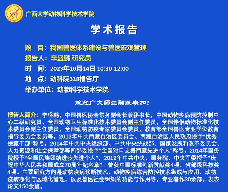 动物科学技术学院学术报告:我国兽医体系建设与兽医宏观管理