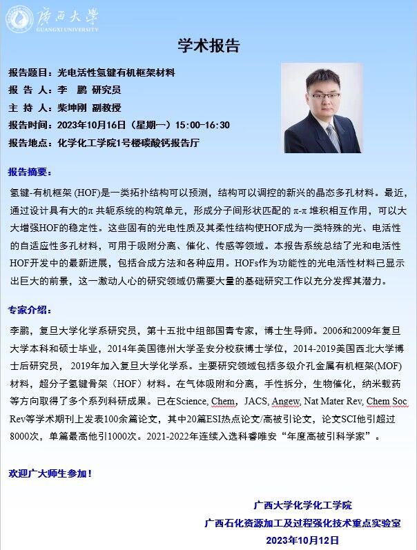 化学化工学术报告:光电活性氢键有机框架材料