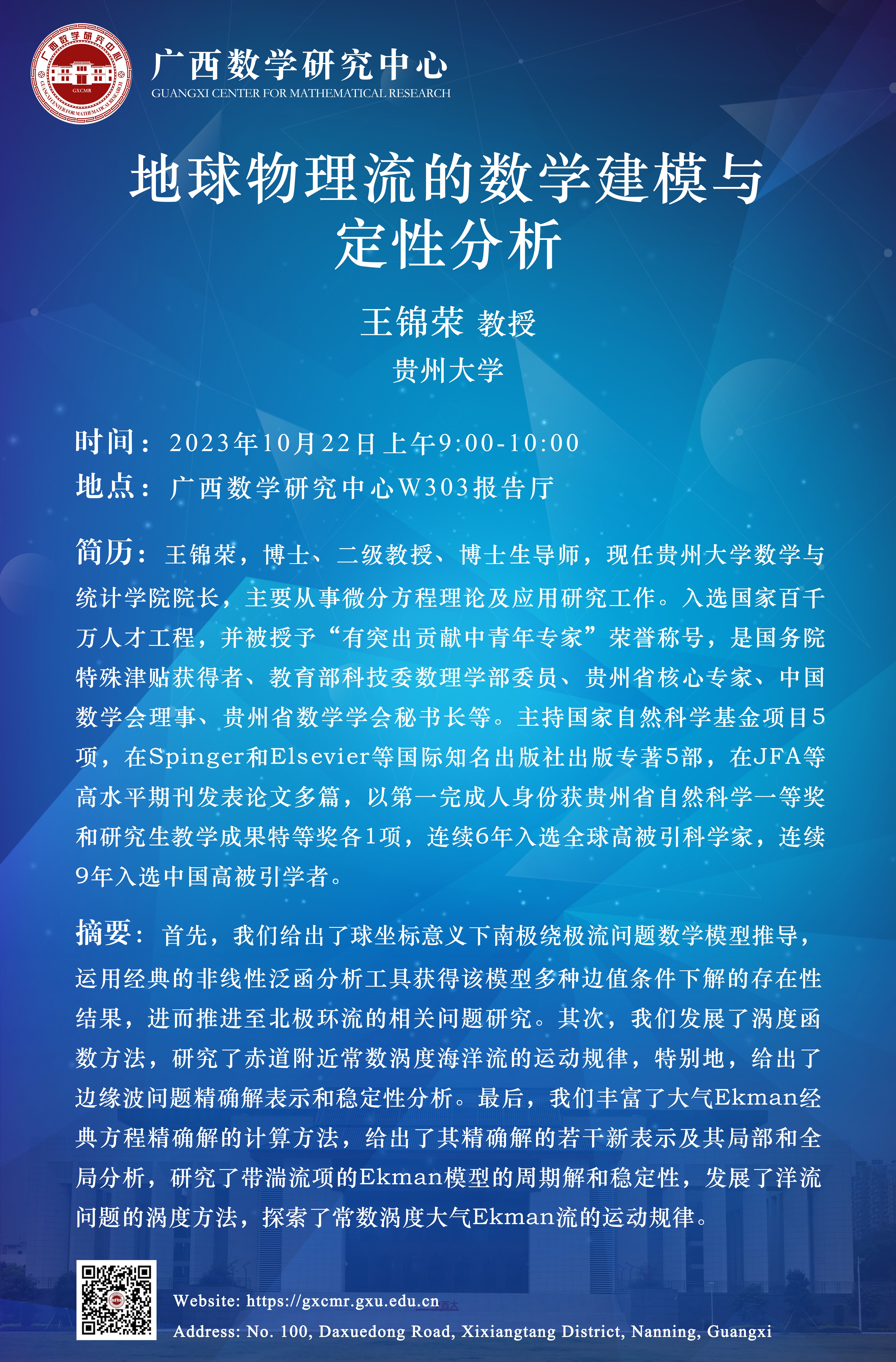 广西数学研究中心学术报告:地球物理流的数学建模与定性分析