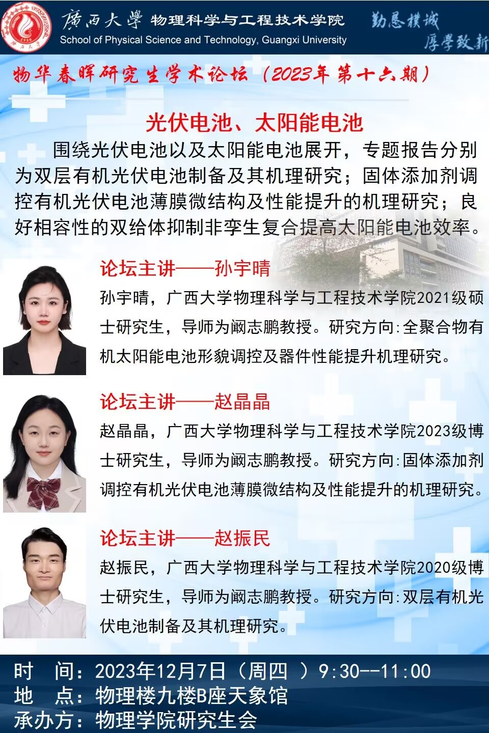 物理学院2023年物华春晖学术论坛(第16期):光伏电池、太阳能电池