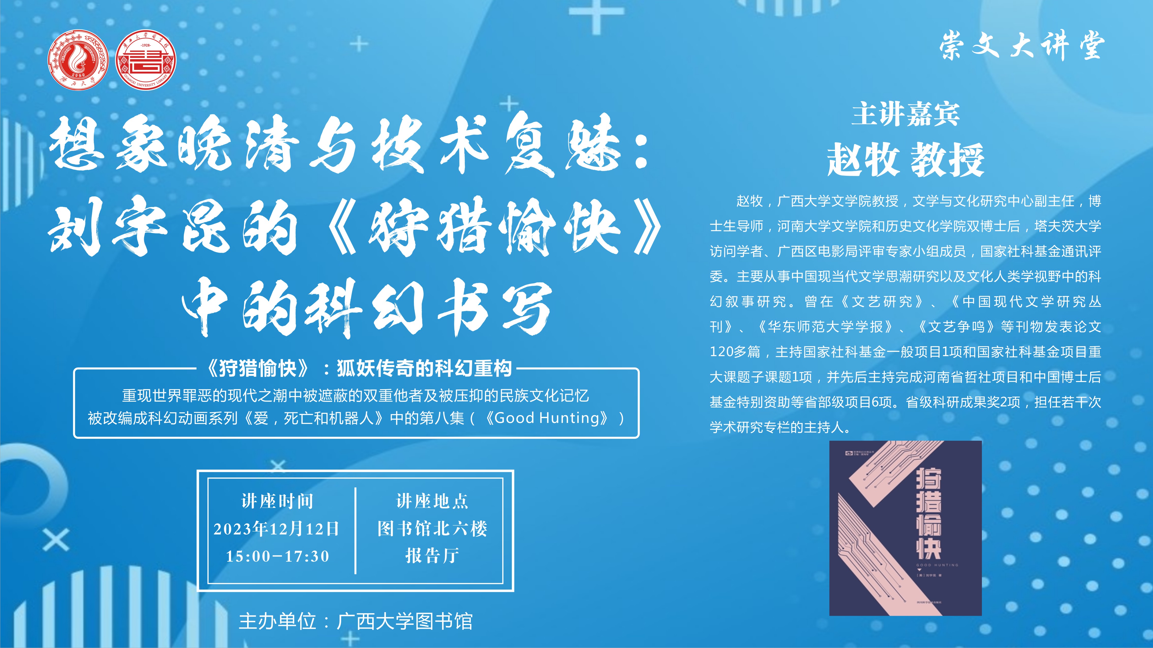 崇文大讲堂:想象晚清与技术复魅----刘宇昆的《狩猎快乐》中的科幻书写