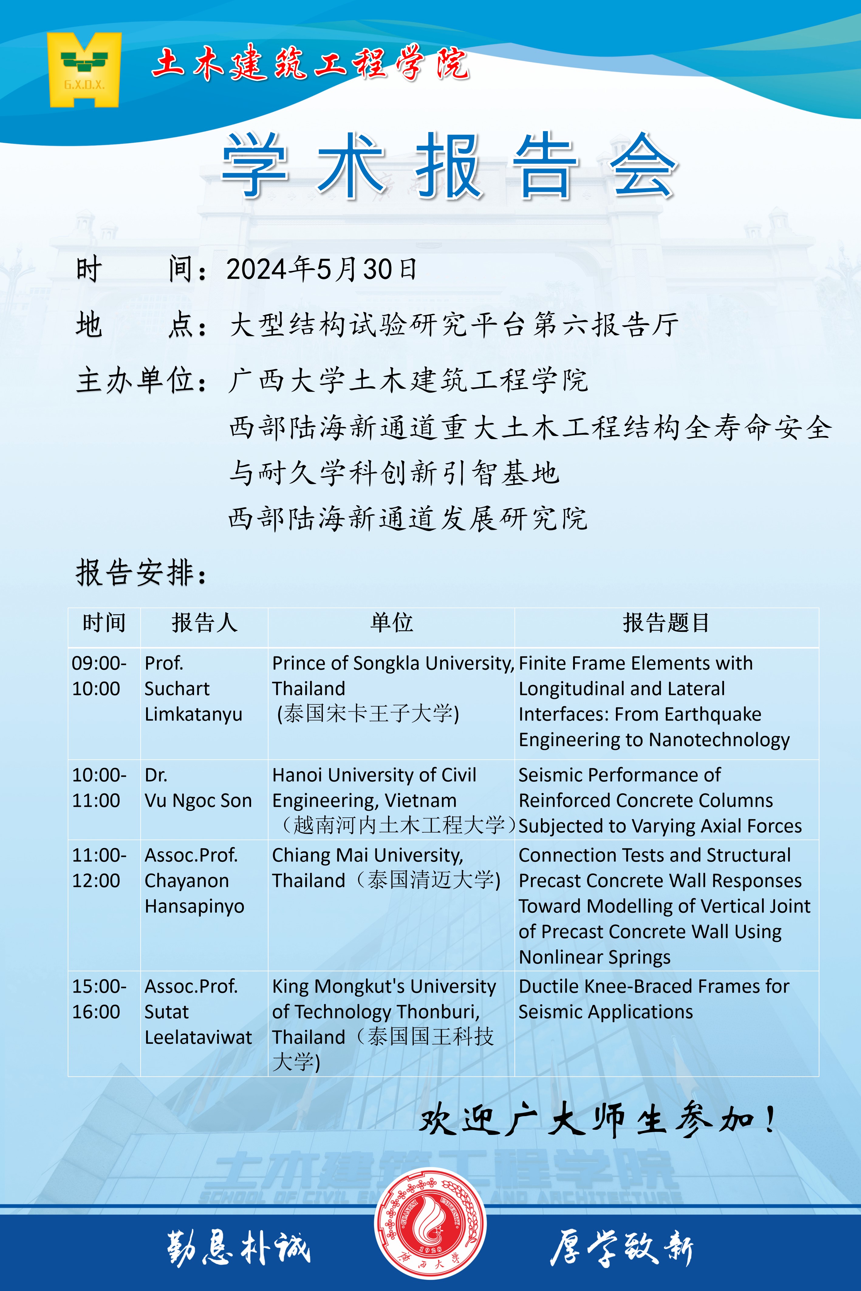 土木建筑工程学院学术报告会:Finite Frame Elements with Longitudinal and Lateral Interfaces: From Earthquake Engineering to Nanotechnology