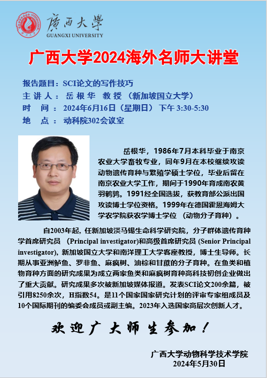 新葡的京集团8814检测站2024海外名师大讲堂:SCI论文的写作技巧