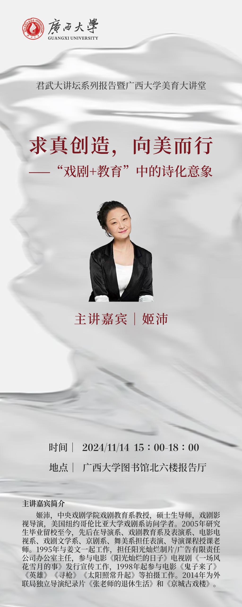 君武大讲坛暨美育大讲堂:求真创造,向美而行——“戏剧+教育”中的诗化意象