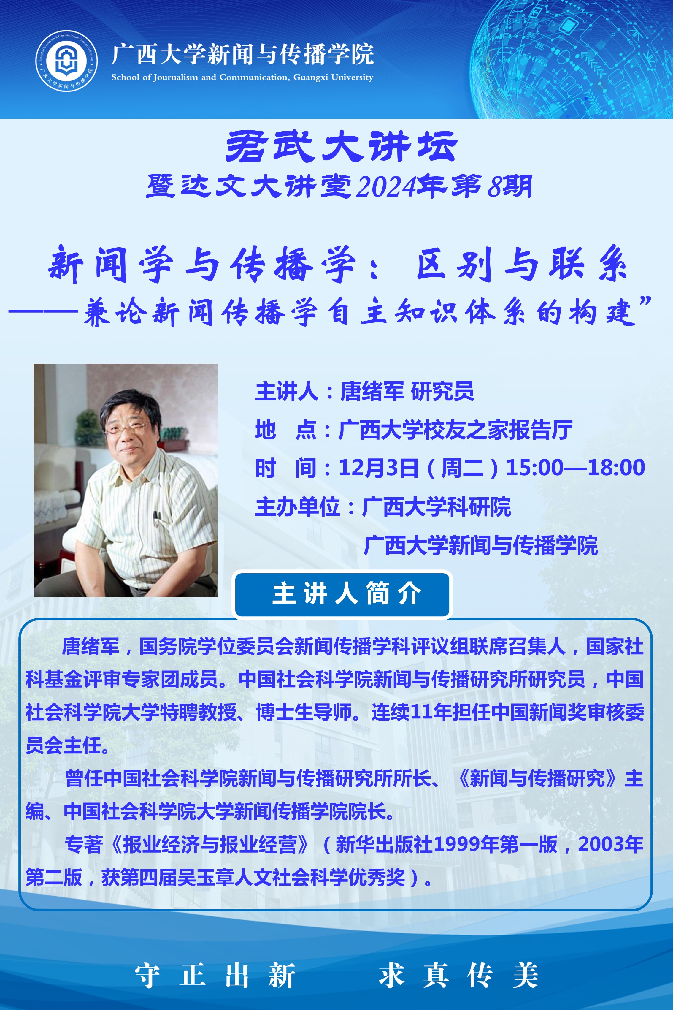 君武大讲坛暨达文大讲堂:新闻学与传播学:区别与联系 ——兼论新闻传播学自主知识体系的构建