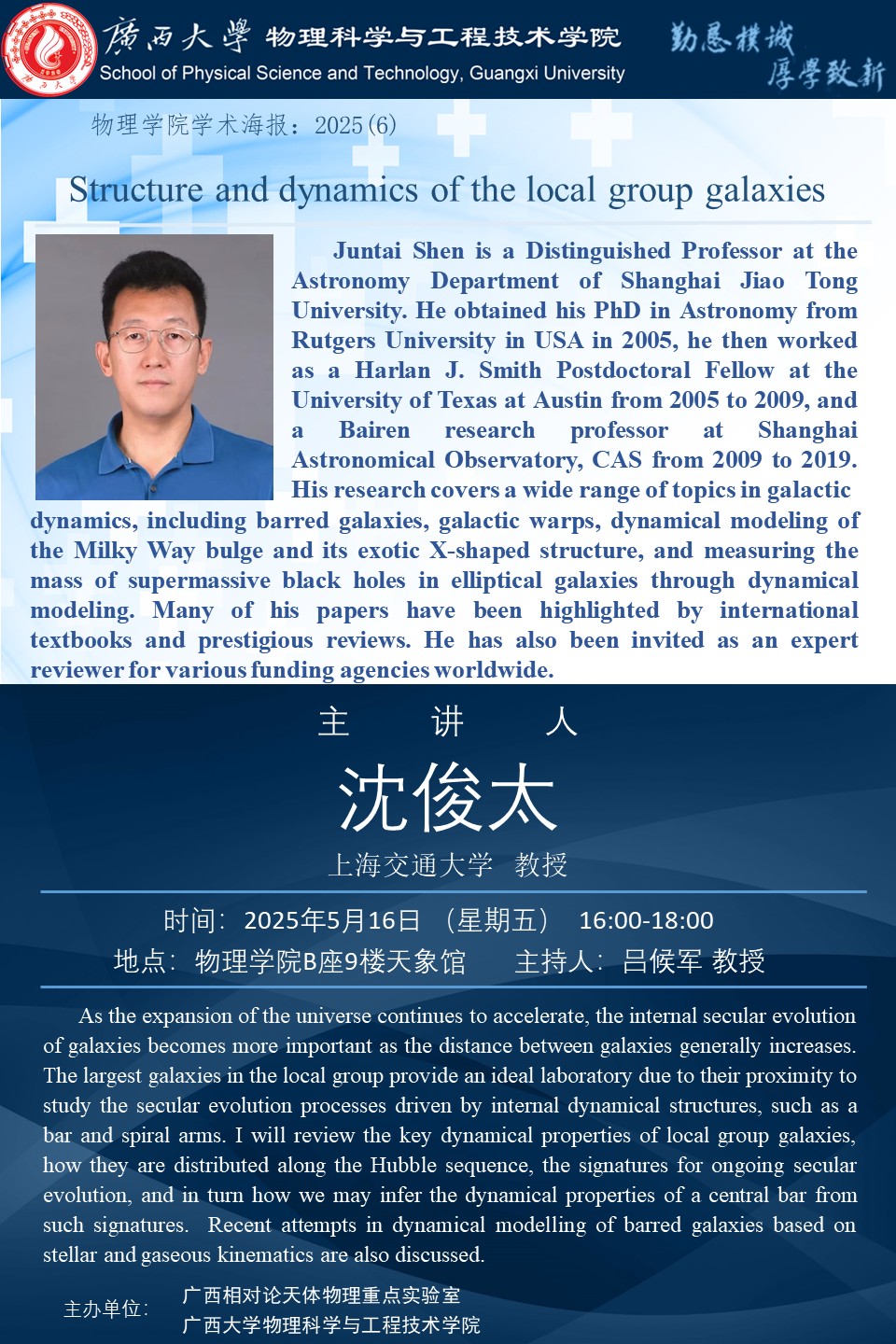 物理科学与工程技术学院学术报告:Structure and dynamics of the local group galaxies