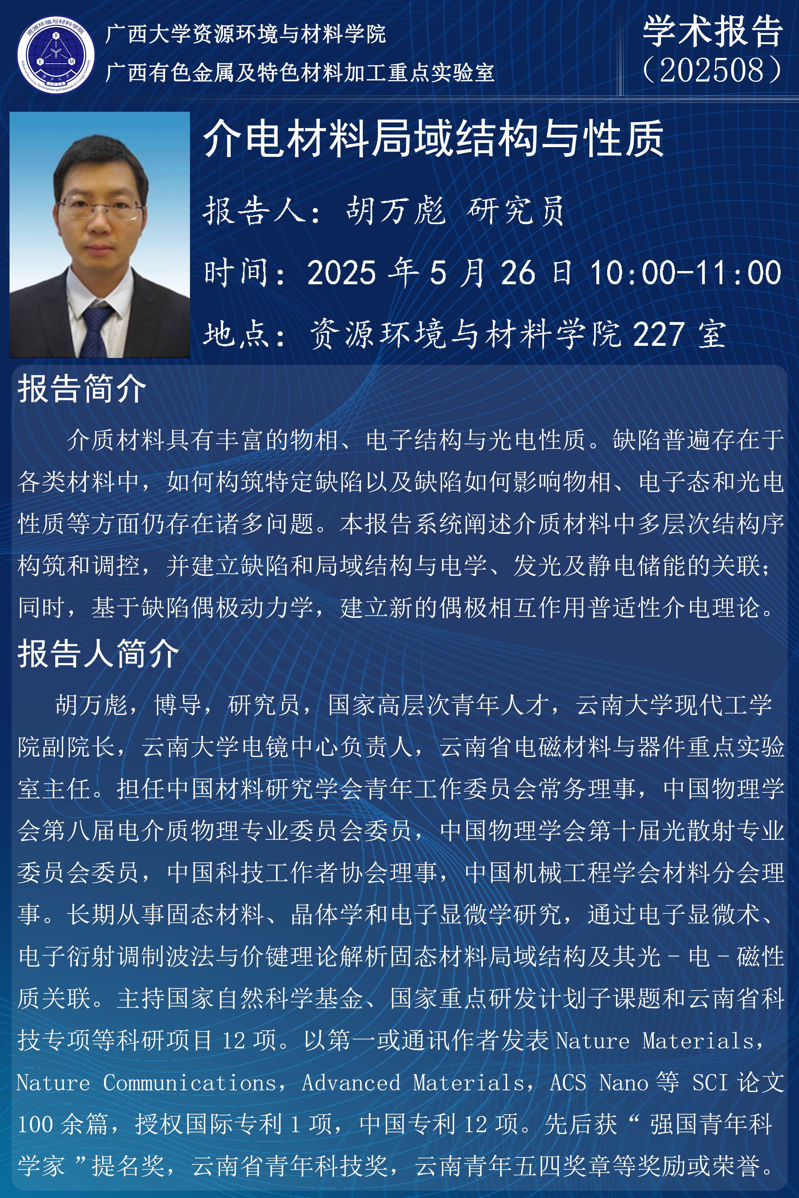 资源环境与材料学院学术报告:介电材料局域结构与性质