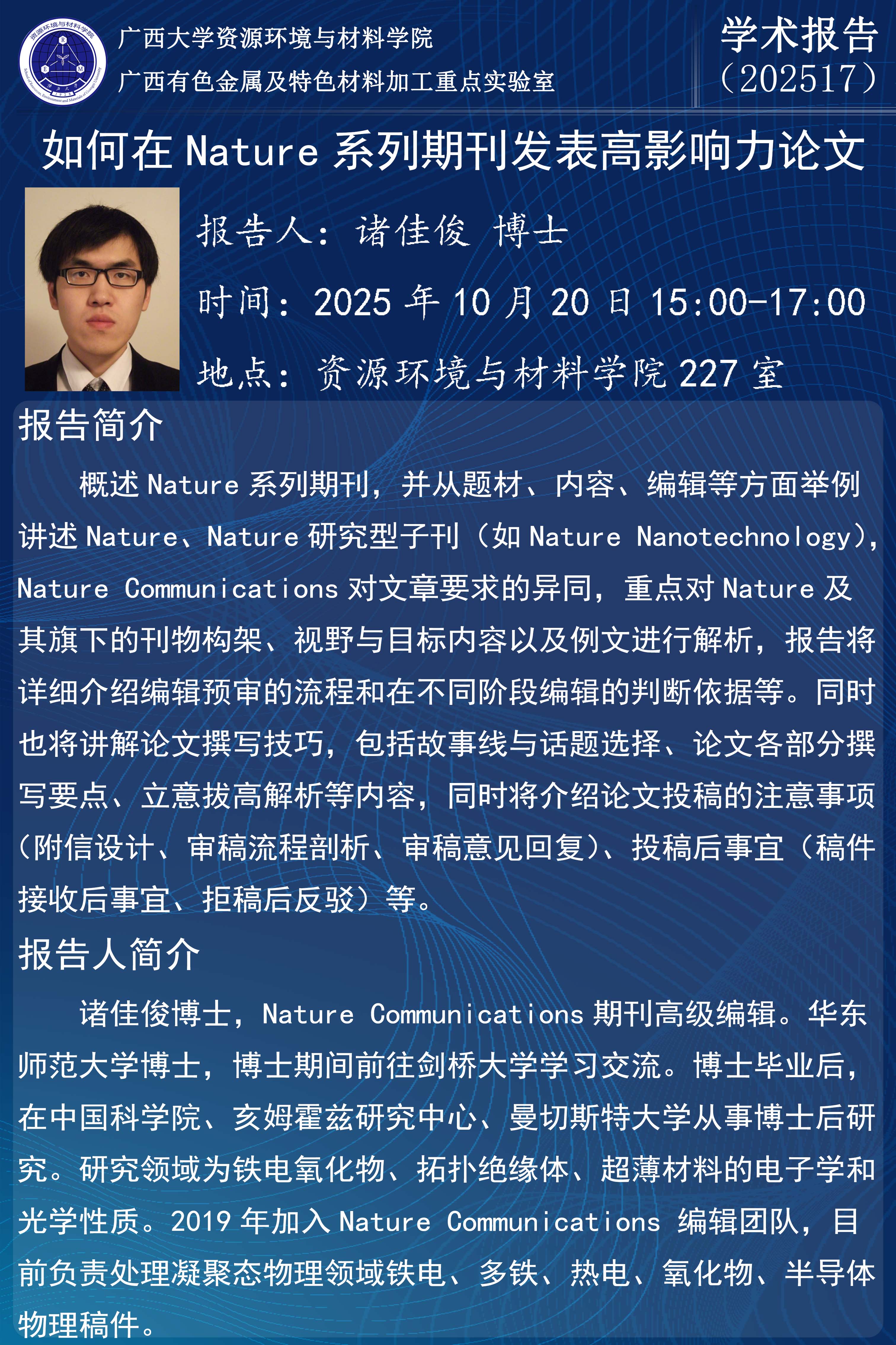 资源环境与材料学院学术报告:如何在 Nature 系列期刊发表高影响力论文