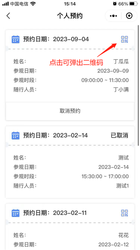 8. 个人中心-个人门票预约中可查看个人预约记录。