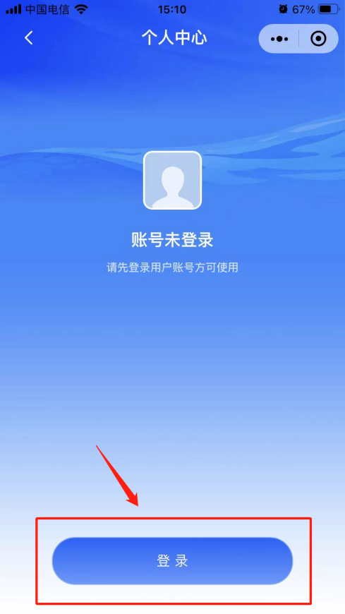 2. 首次进入需登录,点击“个人中心”→“登录”→“微信登录”。