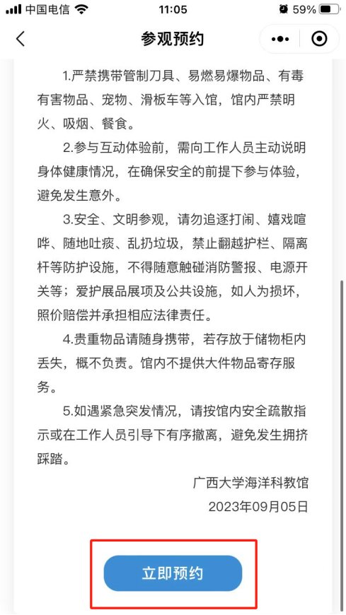 2. 阅读预约须知,点击“立即预约”按钮。
