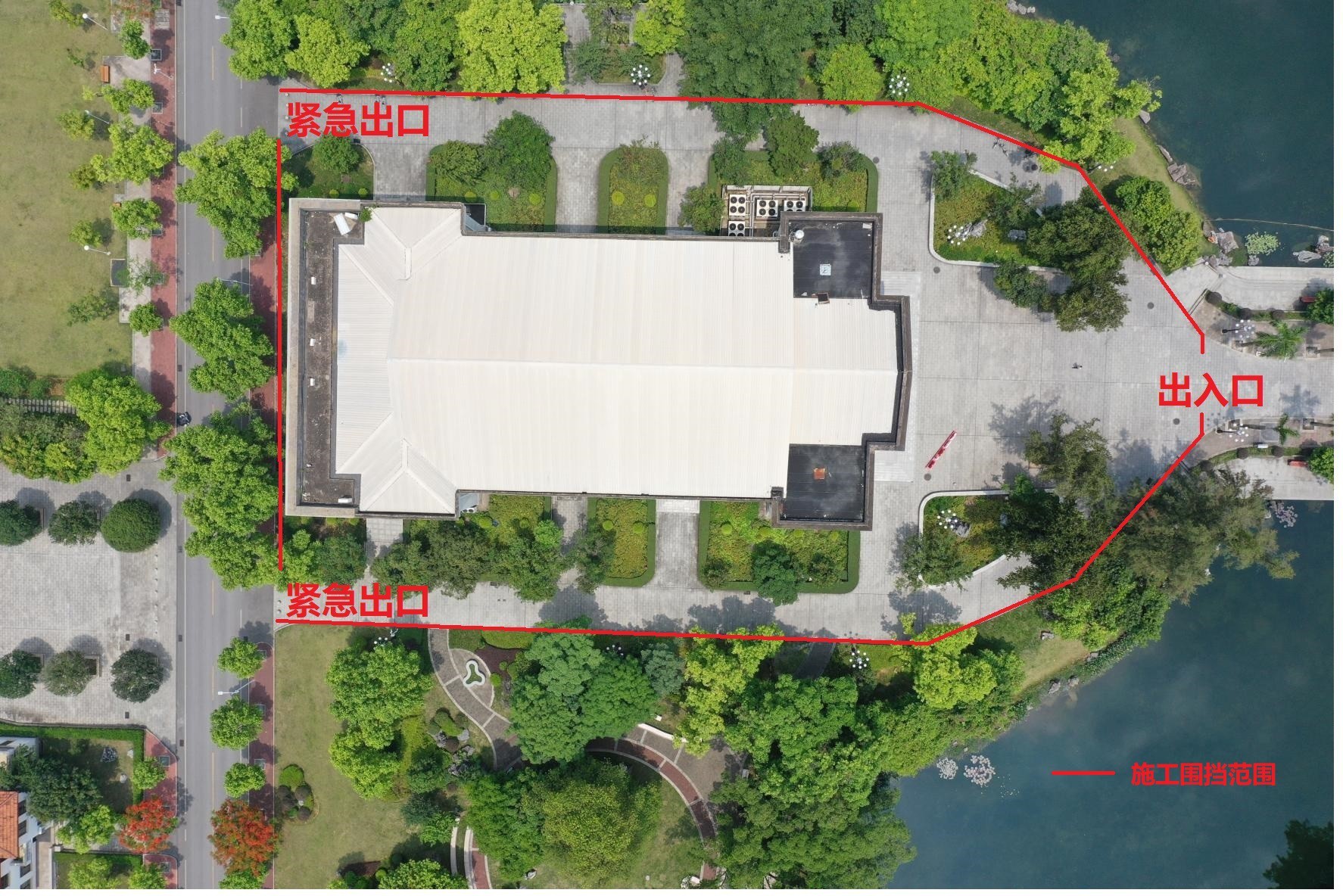 附件:新葡的京集团8814检测站大礼堂修缮工程施工围挡范围