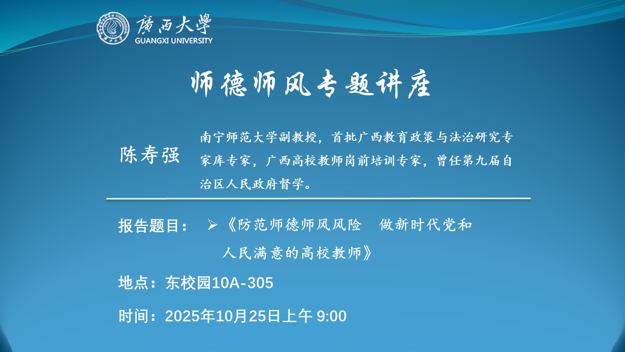 陈寿强 南宁师范大学副教授,首批广西教育政策与法治研究专家库专家,广西高校教师岗前培训专家